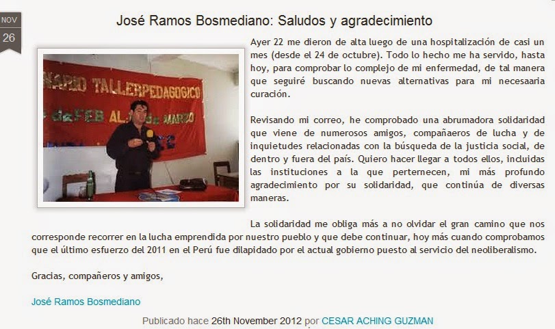 - Ernesto Felix Elias Es una lástima el deceso de "PEPE RAMOS BOSMEDIANO" maestro combativo y ex secretario general del SUTEP. Cuando un maestro muere, nunca muere!!!!!